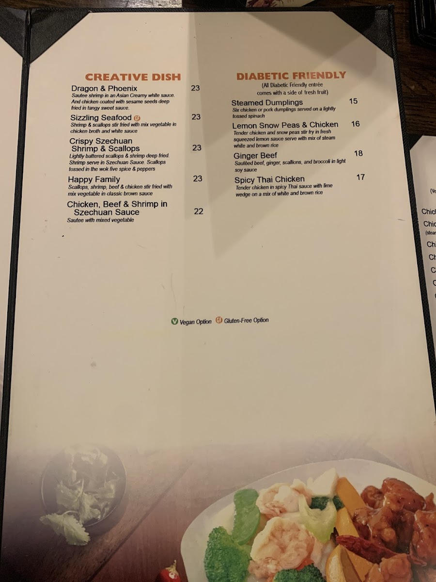 Lighty battered scallops & shrimp deep fried. Shrimp serve in szechuan sauce. Scallops tossed in the wok with five spice and peppers
