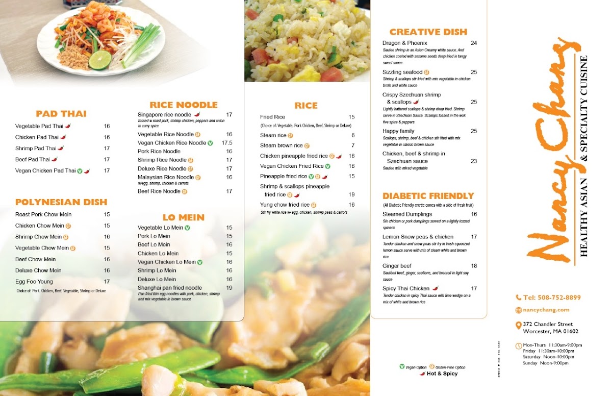 Spring rolls. Chicken fingers, Boneless spareribs, beef teriyaki, chicken wings, coconut shrimp, crab rangoon